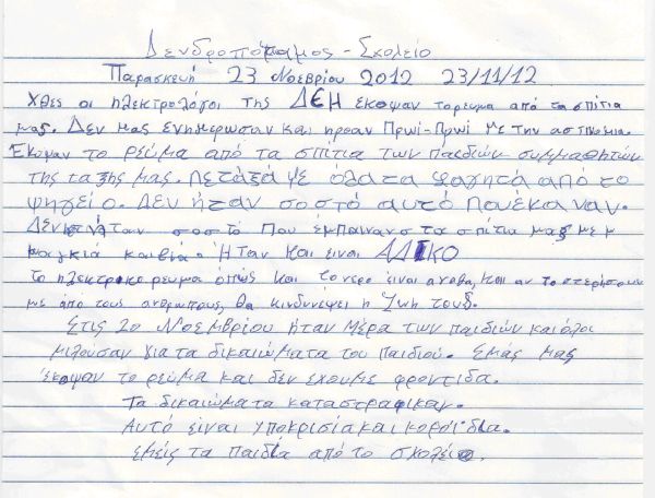 διακοπή της παροχής είναι και οικογένειες μαθητών της τάξης μας και μάλιστα